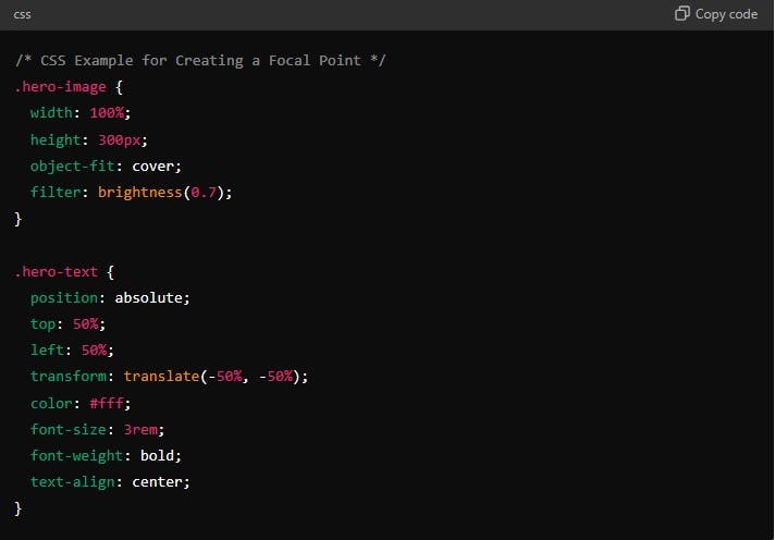 A focal point is the visual element that immediately draws the viewer's attention when they land on a web page. It’s crucial to establish a strong focal point to guide users through the page in a way that aligns with your design goals. The focal point could be a hero image, a call-to-action button, or a featured product.